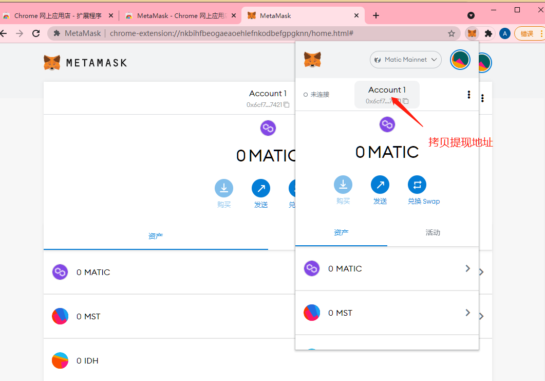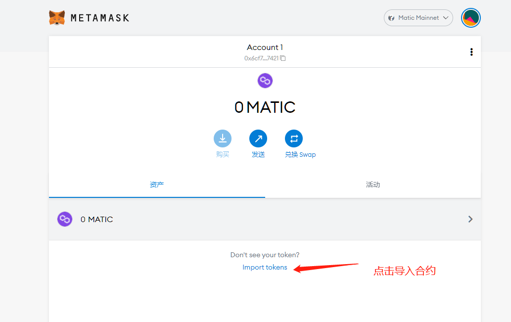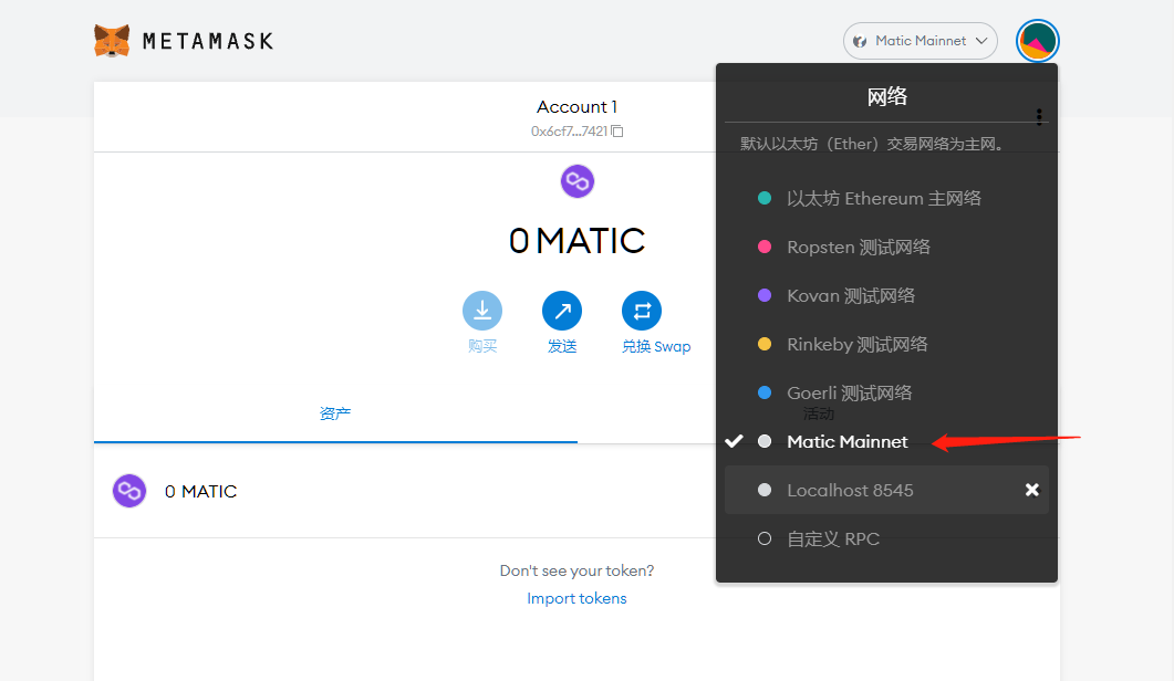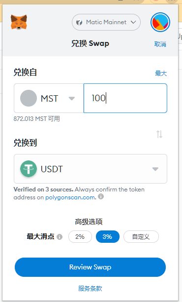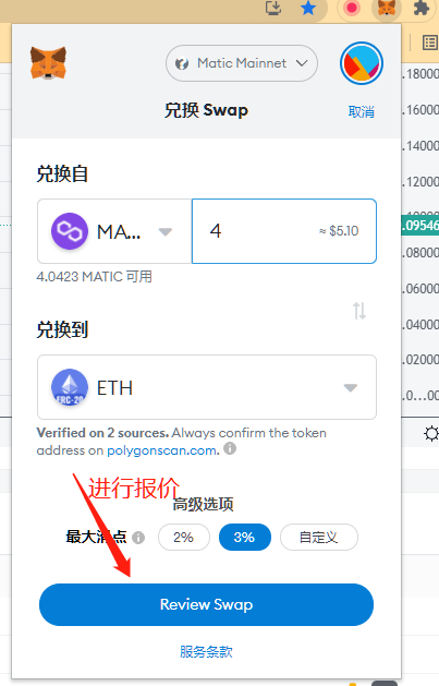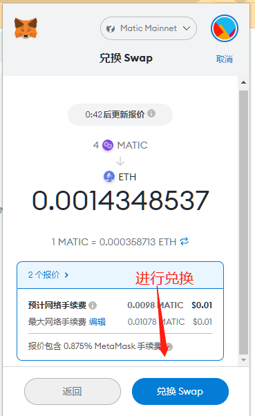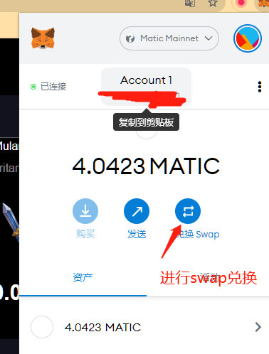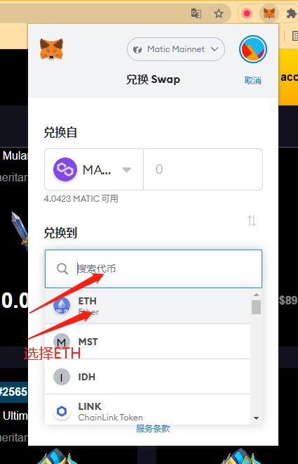 购买英雄是需要用到ETH来购买的,我们可以用从币安提现过来的matic进行swap换成ETH