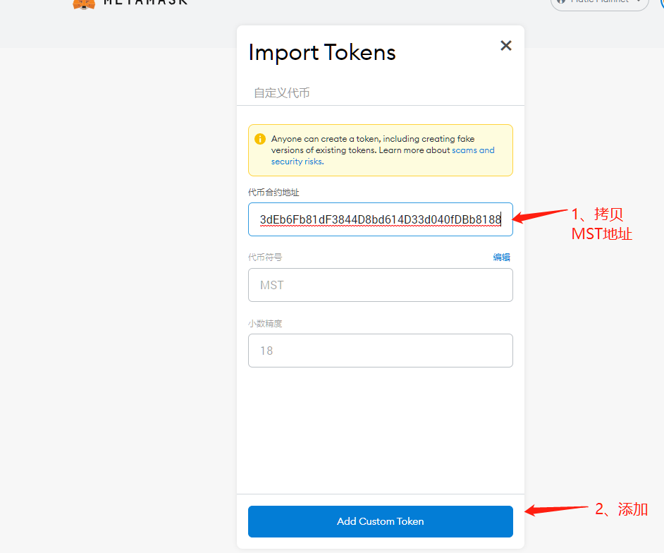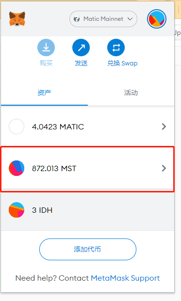 Key钥匙、IDH英雄、matic ETH按照添加MST魔法石步骤即可