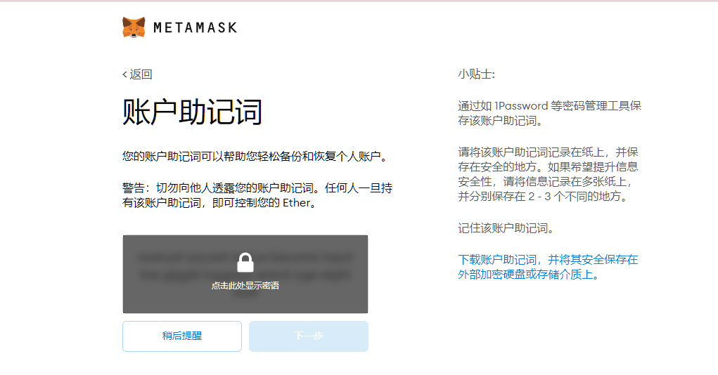 显示助词器(这个自己保管好,不能泄露,泄露钱包就没了)