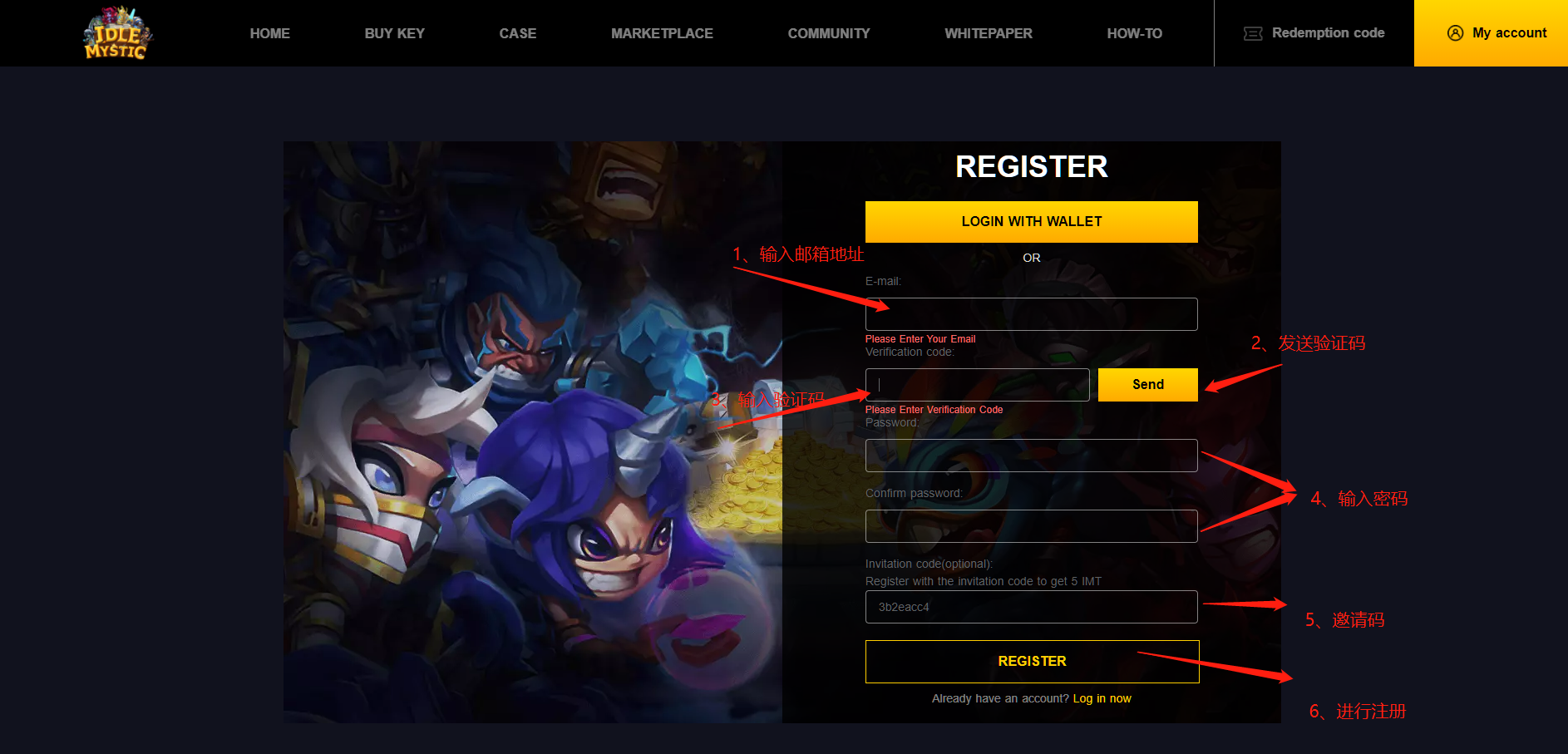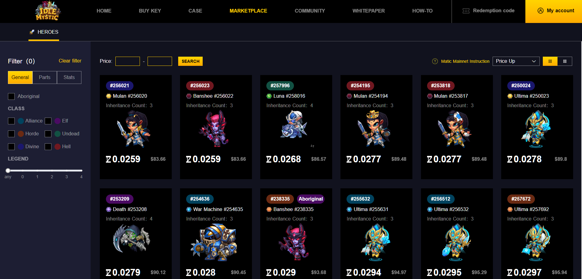 可去官网市场进行购买英雄:https://www.idlemystic.io/marke