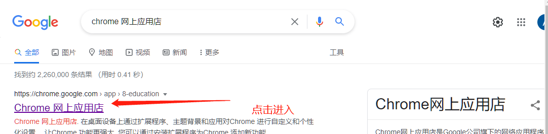 在google输入chrome 网上应用店并搜索进入网上应用商店