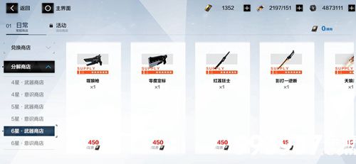 2、补给商店,补给商店中会随机刷新一些能使用螺母兑换的物品,其中就有武器,不过不超过五星,因此如果实在抽不到前期可以在这里买。