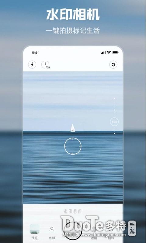 1、应用加水印照相机拍摄,选好水印、一键照相,水印相片全自动迅速转化成